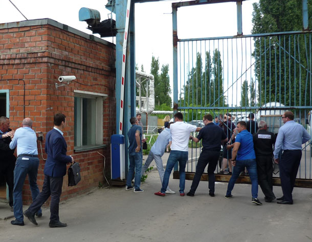 События, разворачивавшиеся 21 июня на предприятии Левобережных очистных сооружений, напоминали истории о рейдерских захватах из лихих 90-х. Около полудня сюда в буквальном смысле слова ворвались представители «ЭкоЛайнера». Они пытались открыть автоматические ворота, чтобы пропустить автомобиль с оборудованием для ремонта подстанции. Но сотрудники ЧОПа, охраняющие ЛОС, этого не допустили.