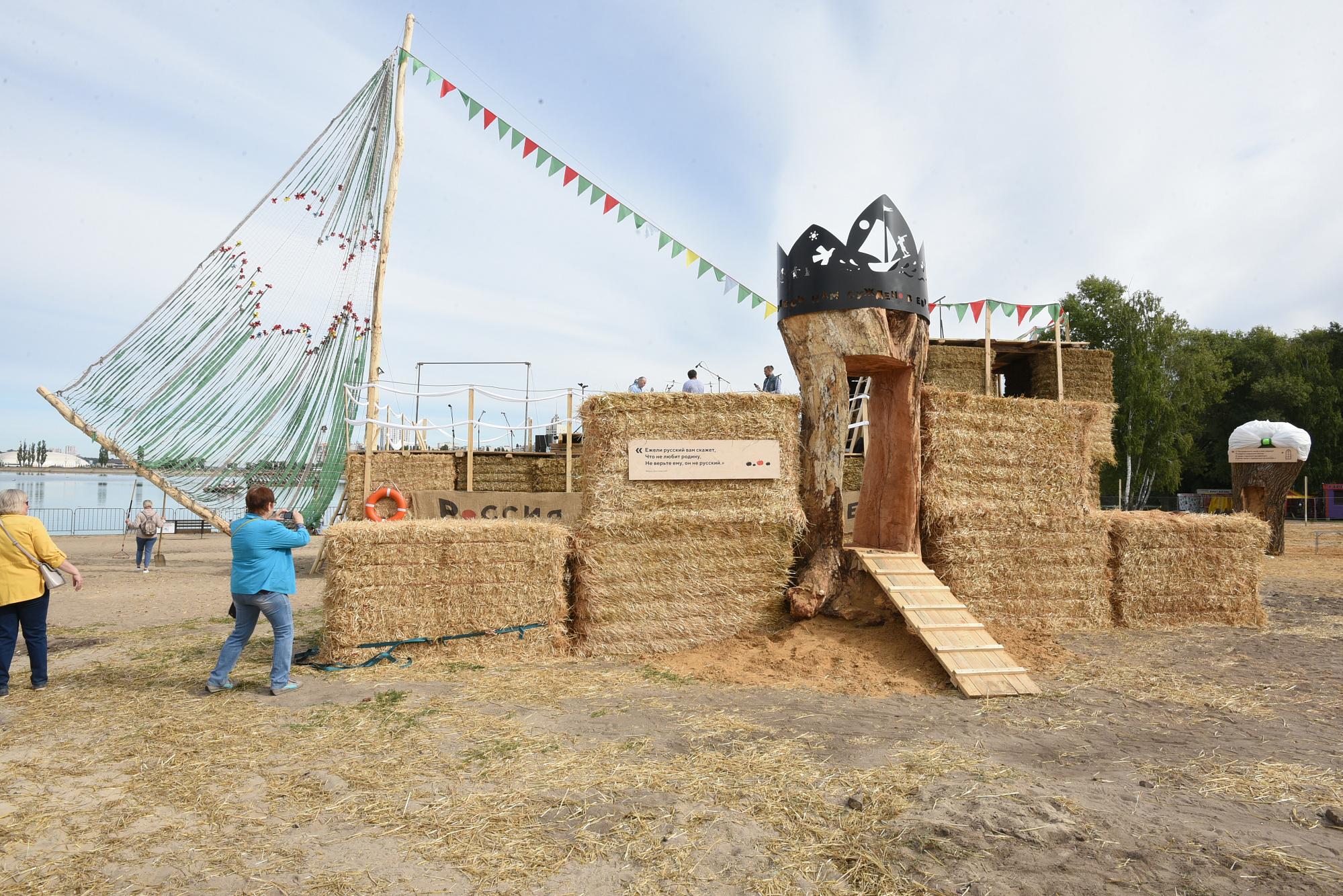 В этот раз в зоне «Сено-солома» дизайнеры соорудили из сена огромный корабль, вместивший сцену. На ней безостановочно разворачивались события: играла московская группа Churiloff-Band, выступали гимнасты, размышляли на актуальные темы Пушкин и Толстой. Входом на соломенное судно служил арт-объект «Окно в Европу». Борта корабля украшали философские изречения.