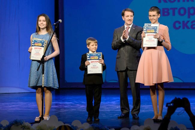 Глава региона Алексей Гордеев первым делом посетил выставку работ участников конкурса. А потом постоянная ведущая церемонии Заслуженная артистка России Анастасия Заворотнюк пригласила Алексея Гордеева на сцену для вручения наград в номинации «Конкурс авторской сказки». Обращаясь к ребятам, губернатор выразил уверенность в том, что опыт, полученный ими на фестивале, обязательно пригодится в дальнейшем.
