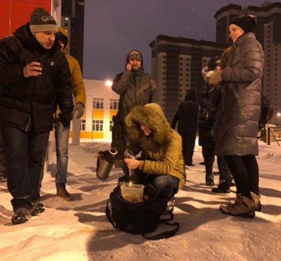 Зимней ночью родителей у 102-й школы от мороза спасал горячий чай.