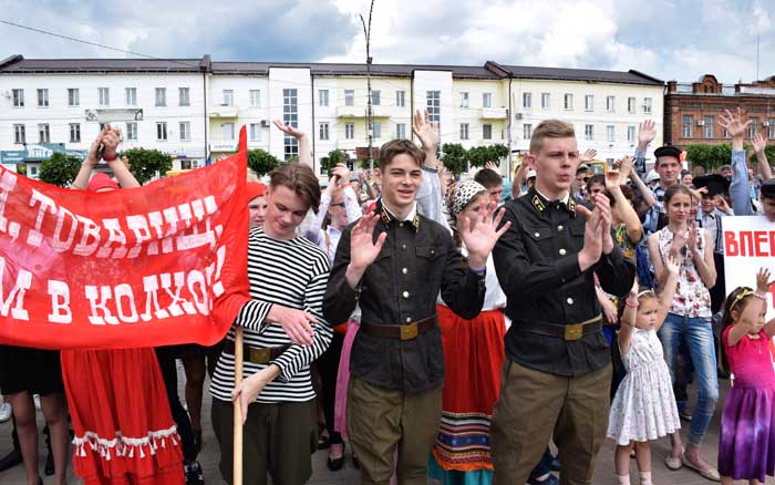 …И вот уже на площадь, что расположена здесь же по соседству, начинают собираться острогожцы. В колоннах молодые люди в буденновках, девушки в красных косынках, кто-то в солдатской форме, а кто-то в рабочей спецовке. И транспаранты в руках: «Даешь колхозы!», «Партия сказала: «Надо», комсомол ответил: «Есть!»