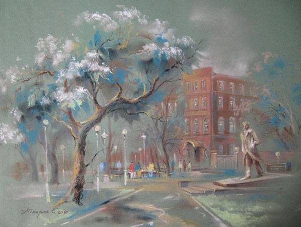 На большой цветной вклейке и обложке размещены репродукции картин университетского пленэра 2013 года – портреты, городские виды, пейзажи, жанровые сюжеты. Акварель и масло, пастозная фактура и тонкий рисунок, вечерняя палитра и утреннее пиршество красок… И совсем не случайно очерк Тамары Дьяковой об этой живописи называется «Университет вдохновения».