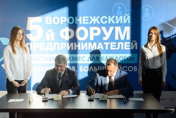 После открытия форума губернатор осмотрел выставку-презентацию «Бизнес для каждого», состоящую из нескольких тематических блоков. Затем состоялось подписание Соглашения между Правительством Воронежской области и Ассоциацией кластеров и технопарков России. Губернатор Александр Гусев и директор Ассоциации Андрей Шпиленко поставили свои подписи под документом, который должен способствовать развитию промышленных кластеров и технопарков на территории области.