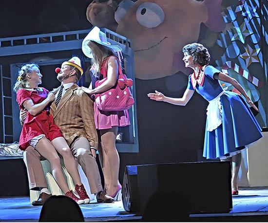 Пролог даёт основания подозревать, что нам сейчас предложат что-то слишком знакомое не одному поколению. То, что ещё в прошлом веке называли «тюзятиной». Сколько уже было спектаклей про капризную девочку, которая мечтала получить в подарок щенка, но вместо этого получила ценный жизненный урок и нашла себе воображаемых друзей! Когда пространство над сценой заполняется гигантскими муляжами игрушек, это смотрится эффектно, но появление взрослой актрисы в роли маленькой девочки Ани невольно настраивает на иронический лад. Однако быстро осознаёшь, что создатели спектакля даже знакомые приёмы используют скорее как уважительную отсылку к «традиции»; в том, что у них получилось, чего совсем нет, так это пыли. В «Последнем папе» очень вовремя происходит «переключение регистра». То внезапно возникнет мультипликация, то начнут происходить важные события на втором плане (этот эпизод и художником оформлен в ином стиле, чем то, что видел зритель раньше), то отрицательные персонажи появятся на театральных балконах. Всё это оказывается очень действенно для юного зрителя.