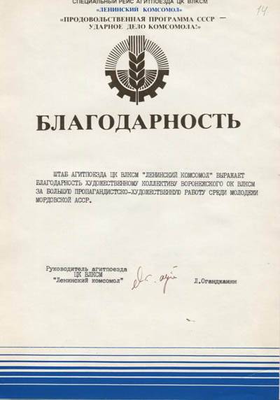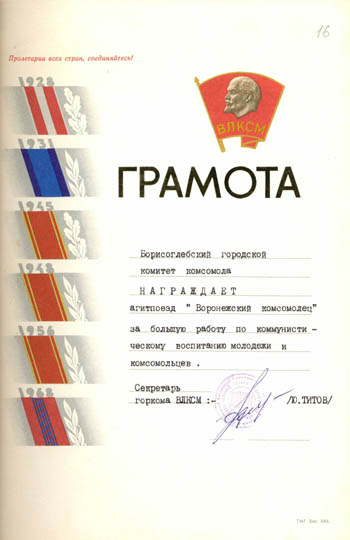 Из постановления бюро Воронежского обкома ВЛКСМ