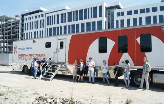 [~DETAIL_TEXT] => На территорию парковки бизнес-центра «Форум» 27 июня прибыл мобильный пункт Воронежской областной станции переливания крови.