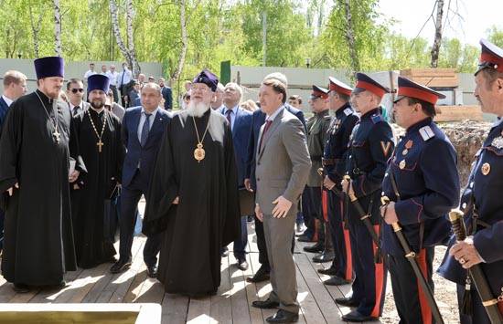 Затем Алексей Гордеев и Александр Гусев прошли к строящемуся храму В честь иконы Божией Матери «Всех скорбящих Радость». Высоких гостей встречал митрополит Воронежский и Лискинский Сергий.