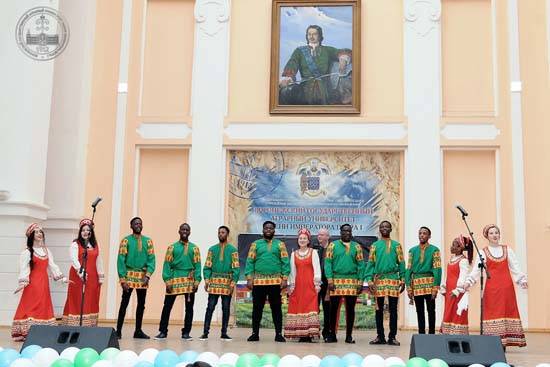 Далее в главном актовом зале состоялся праздничный концерт, который открыл проректор Юрий Некрасов. Он вручил почетные грамоты иностранным студентам университета, отличившимся в разных видах деятельности – общественной жизни, научной работе и спорте.