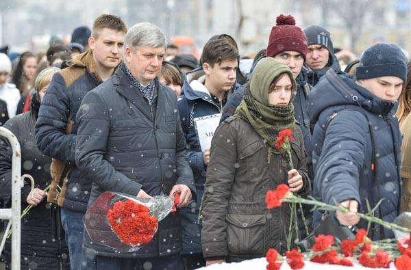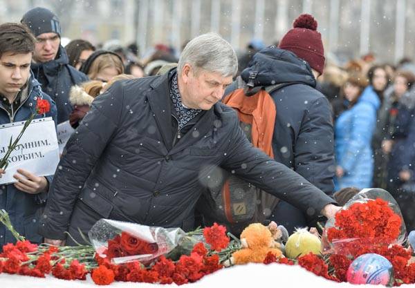 почтили память погибших при пожаре в торгово-развлекательном центре «Зимняя вишня» в городе Кемерово минутой молчания.