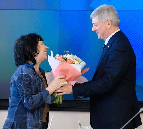 – Вы даёте импульс и гуманитарному, и экономическому развитию области. Поэтому поддержка культуры всегда будет в числе приоритетов для органов власти региона. Как воронежец хотел бы выразить искреннюю признательность от имени всех жителей края за то, что делаете нашу жизнь ярче и интереснее. Сейчас уже нельзя представить столицу Черноземья без «Платоновского фестиваля», «Джазовой провинции». Набирают популярность такие фестивали, как «Маршак», «Мандельштамфест». Сегодня они являются визитной карточкой области и известны далеко за е пределами. В новом, современном, формате работают многие музеи. Развивается концертная и театральная деятельность. Все преобразования и начинания должны быть, безусловно, продолжены. Искренне желаю вам здоровья, новых свершений, пусть вас не покидает вдохновение и вера в свое предназначение, – сказал глава региона.