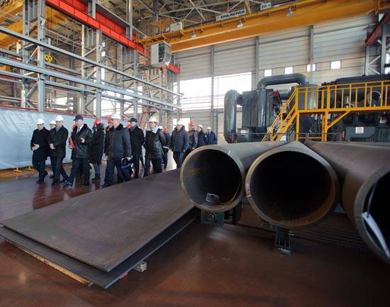Генеральный директор Сергей Кучинский провёл гостей по новому цеху №1 и рассказал о производстве. Цех общей площадью 10 тыс. кв. метров, запущенный в декабре 2015 года, даёт возможность сбора крупногабаритного оборудования весом до 100 тонн.