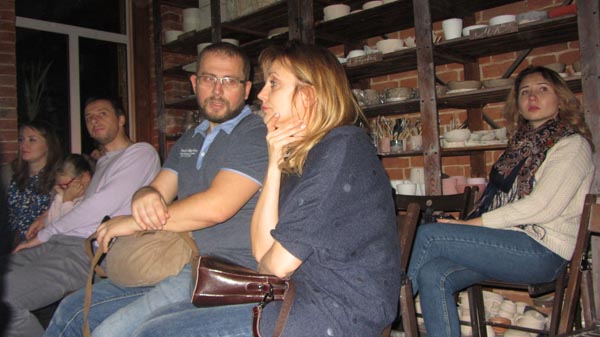 Поздним вечером в стенах школы витали уют и тепло. Горели свечи, играла живая джазовая музыка. Несмотря на многолюдность, все чувствовали себя комфортно. Приятно общались, пили чай, рассматривали выставленные на полках занимательные глиняные композиции – тарелки и кружки, фигурки людей и животных, вылепленные руками воспитанников гончарной школы. Приятный уголок творческой идиллии. Здесь собрались десятки воронежцев, в основном – молодые люди, чтобы посетить первую тактильную выставку в темноте.