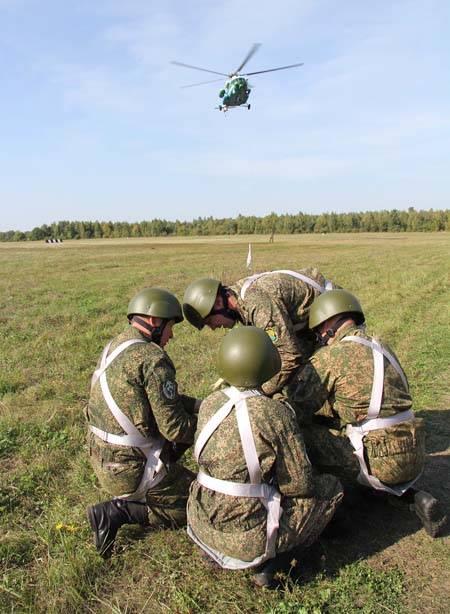 Беспарашютное десантирование применяется в случае, когда группу отряда быстрого реагирования необходимо сбросить в точку, где приземление вертолета невозможно. Например – на воду, в лесной массив или между зданиями. Вертолет «зависает» на высоте от 15 до 40 метров. Бойцы поочередно осуществляют спуски с помощью специальных спусковых устройств, которые включают в себя трос и подвесную систему с карабином. Отработке спусков на практике предшествовали занятия, включающие теоретическую подготовку и спуски с вышки.
