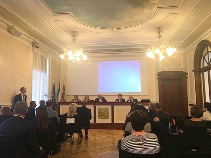 В рамках встречи состоялась презентация Воронежской области для деловых кругов области Венето. В конференц-зале Палаццо дела Риджионе собрались порядка 70 участников – представители деловых кругов, государственных и общественных организаций, а также учреждений высшего образования Венето.