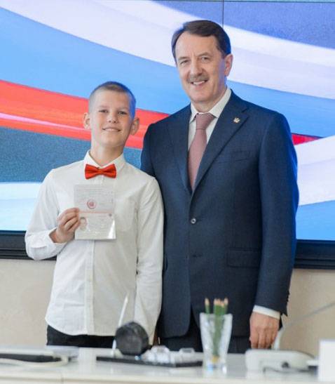 Затем губернатор вручил Алексею Иванову диплом, памятный нагрудный знак лауреата Платоновской премии и сертификат на один миллион рублей.