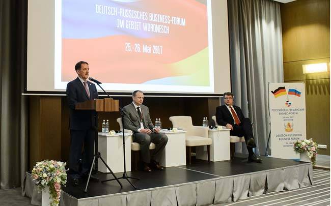 Российско-немецкий бизнес-форум, посвящённый экономическому сотрудничеству предпринимателей двух стран, прошёл в Воронеже в пятницу, 26 мая, с участием губернатора Алексея Гордеева и президента Объединения «Немецко-Российский экономический Союз» доктора Томаса Овербека.