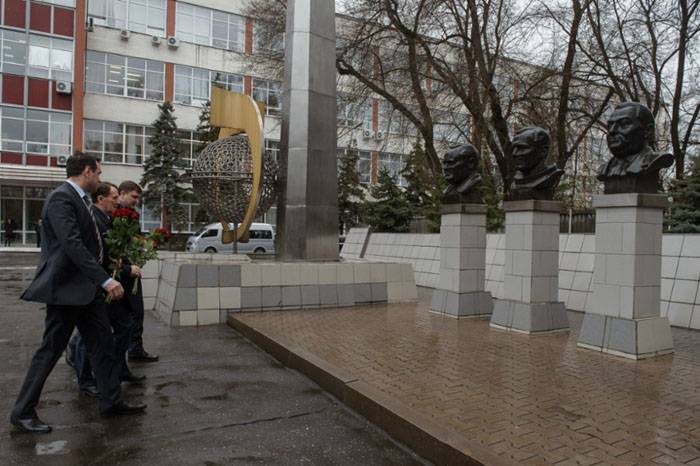 Посещение предприятия Алексей Гордеев начал с возложения цветов к мемориальному комплексу первопроходцам космоса. В памятной церемонии также приняли участие ветераны, сотрудники и руководство КБХА.