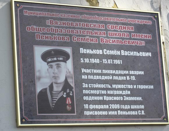 Биография Семёна Пенькова умещается всего в несколько строк. Родился он 5 октября 1940 года в селе Вязноватовка в семье колхозников. В сентябре 1960 года был призван в Военно-морской флот и зачислен в экипаж атомного ракетоносца К-19. Готовились к первому походу, намеченному на лето 1961 года, но он стал роковым… Спустя без малого пять десятилетий, 10 февраля 2009 года, среднюю школу в селе Вязноватовка назовут именем матроса-подводника Семёна Пенькова.
