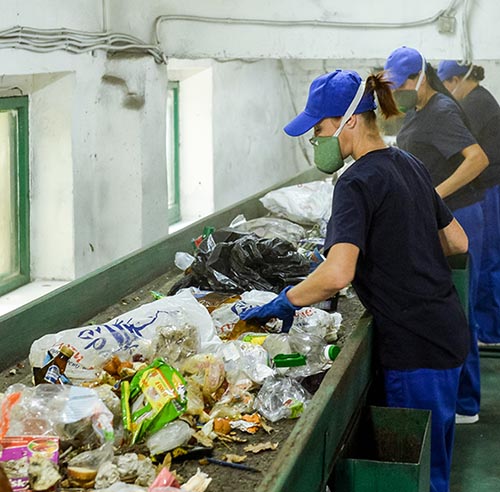 На линии обработки твердых коммунальных отходов.