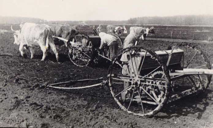 Весенний сев на колхозном поле.