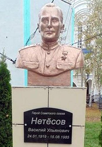 Василий Ульянович Нетёсов (1919-1985) звания Героя Советского Союза был удостоен 13 сентября 1944 года. В послевоенные годы окончил курсы усовершенствования офицерского состава «Выстрел» и продолжил службу в Вооружённых Силах. В отставку ушёл в звании капитана. Жил и работал в городе Саратове, где и похоронен.