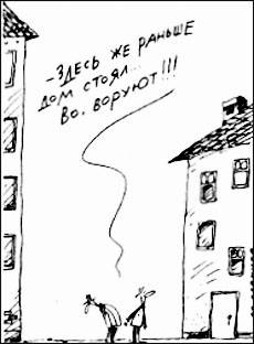 Начальник снова дал нагоняй и распорядился сначала снести дом, а потом устранить недостатки. Дом снесли в одну ночь, жильцы едва успели унести ноги.