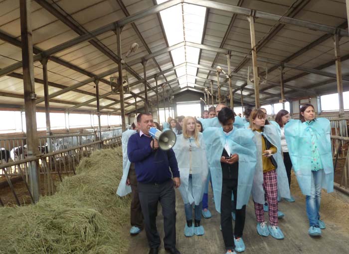 – Большинство из них окончили Воронежский ГАУ, – рассказывает Владимир Пулин. – Это мои заместители Александр Нечаев и Андрей Дубенцов, главный зоотехник Юрий Овчаренко, главный экономист Антонина Семенченко, главный ветеринарный врач Алексей Гелемеев. Начальник молочного комплекса Евгений Гнездилов – выпускник Воронежской лесотехнической академии, старший зоотехник по кормлению Екатерина Острикова окончила Курскую сельскохозяйственную академию. Мы покажем вам работу современного производства, расскажем о передовых технологиях в выращивании кормов, содержании животных, производстве молока. Подобные экскурсии для нас не новинка. Проводим их для школьников, студентов техникумов, вузов.