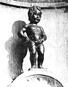 Но самый оригинальный фонтан-памятник больше 400 лет стоит в центре Брюсселя. У этого фонтана всего одна водяная струя. И истекает она из бронзового младенца. А из какого места у младенца может вытекать жидкость, я думаю, вы уже догадались.