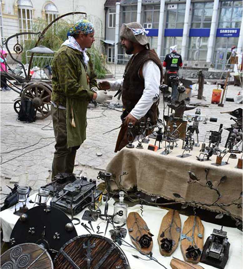 Ещё любопытнее было наблюдать за работой кузнецов творческой мастерской «Кузница МарКА», которые у всех на глазах создавали маленькие шедевры кузнечного искусства и приглашали всех поработать кузнечным молотом. На площадке звучала «тяжёлая» музыка, раздувались кузнечные меха, полыхал огонь, взлетали ввысь огромные молоты, которыми ловко орудовали крепкие парни в кожаных фартуках, и публика, в особенности мальчишки, завороженно наблюдала за старинным ремеслом.