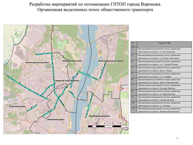 Разработчиками в ходе презентации были также даны предложения по введению в Воронеже выделенных полос для общественного транспорта, общей протяженностью до тридцати километров.