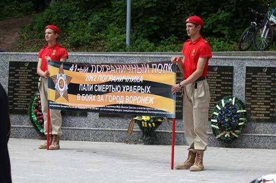 Евгений Юрченко напомнил, что именно на этом священном месте бойцы 41-го полка НКВД первыми встретили фашистов на подступах к городу и помогли частям 40-й армии занять оборону. Именно им, защитникам Воронежа, Александр Безыменский посвятил такие строки: