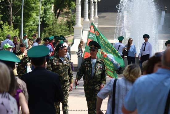 .В Воронежском центральном парке собрались те, кто нёс службу в Пограничных войсках. У памятника погибшим бойцам 41-го полка НКВД, первым из регулярных частей пришедшего на защиту Воронежа в 1942 году, состоялся торжественный митинг. Его открыл председатель Воронежской региональной общественной организации ветеранов (пенсионеров) Пограничной службы ФСБ России полковник в отставке Валерий Горовенко.