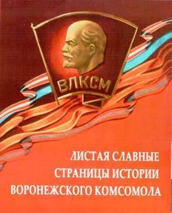 Воронежская комсомолия также вписала немало страниц в историю ВЛКСМ. Она поднимала молодежь в годы первых пятилеток на восстановление разрушенного народного хозяйства. В годы Великой Отечественной войны комсомольцы области были в числе тех сотен добровольцев, которые вступили в смертельную схватку с фашизмом и ускорили победу, кроме того, ударным трудом ковали её и в тылу, на производстве под девизом «Всё – для фронта, всё – для Победы!».