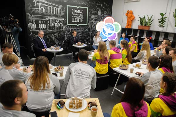 С участниками форума встретился губернатор Алексей Гордеев. Встреча прошла в областном Доме молодёжи 16 октября – накануне Международного дня студентов.