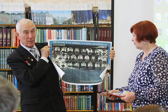 Так, на встрече в библиотеке он представил одного из героев своих очерков – слушателя 3-го отряда космонавтов СССР А.А. Скворцова.