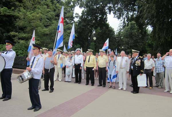 Праздничная колонна формировалась в Кольцовском сквере. Здесь собрались те, для кого ВМФ стал частью жизни. Под бравурную мелодию оркестра колонна прошла по проспекту Революции к площади Победы.