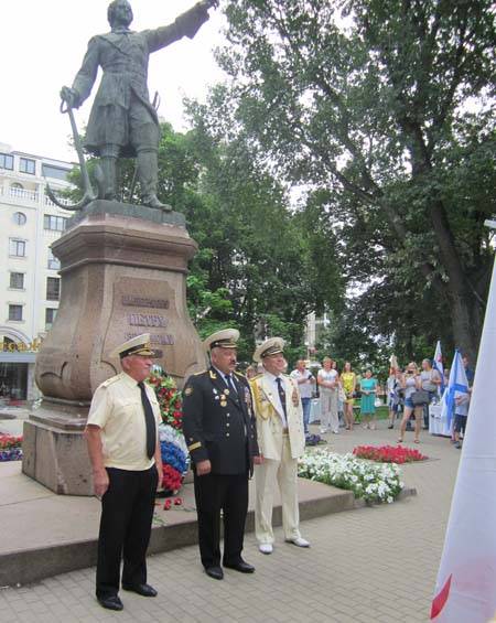 Местом сбора следующего поклонения ветеранов ВМФ стал Петровский сквер. Открывая митинг, председатель региональной общественной организации «Колыбель русского флота» контр-адмирал в отставке Николай Ермаков отметил большую роль Петра Первого, уделявшему много внимания борьбе за свободный выход России к морю на юге. Ветераны флота, отдавая дано уважения царю-реформатору, возложили венок и цветы к памятнику Петру Великому.