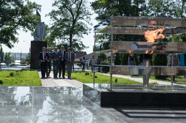 В ходе рабочей поездки Александр Гусев посетил ещё один мемориальный объект – сквер Победы в селе Верхний Мамон и стелу «Населенный пункт воинской доблести», установленную в 2015 году.