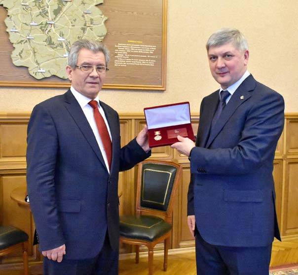 В ходе встречи Александр Гусев также поздравил Александра Меркулова с 65-летием и вручил ему почётный знак «За добросовестный труд и профессионализм». Эта награда присуждается лицам, внесшим значительный вклад в социально-экономическое развитие Воронежской области.