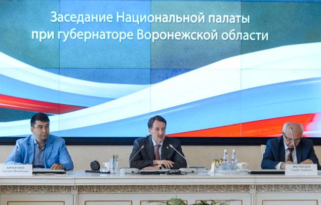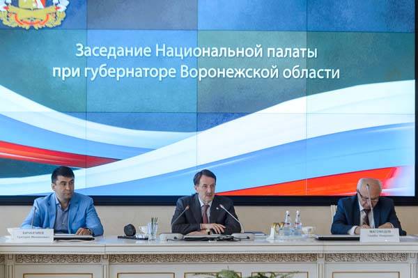 Под председательством главы региона Алексея Гордеева в пятницу, 16 июня, состоялось заседание Национальной палаты при губернаторе Воронежской области. Членам палаты и приглашённым было предложено обсудить новые формы работы Национальной палаты, а также поговорить о том, как вовлечь молодёжь в процесс по укреплению этноконфессионального мира и согласия в Воронежской области.