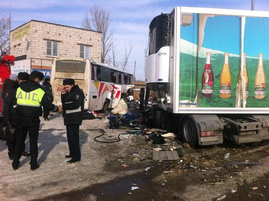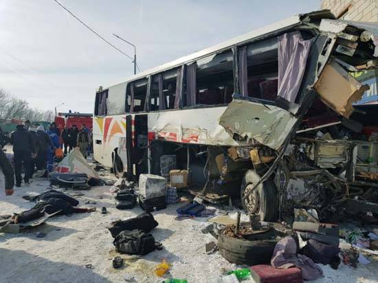 На месте ДТП скончались от полученных телесных повреждений водитель грузового автомобиля и 40-летний пассажир автобуса – сменный водитель. Водитель автобуса и восемь пассажиров, в возрасте от 29 до 57 лет, с травмами различной степени тяжести доставлены в медучреждение. Госпитализированы водитель автобуса и восемь пассажиров – шесть мужчин, 49, 46, 29, 30, 42 и 54 лет, и две женщины, 46 и 57 лет.
