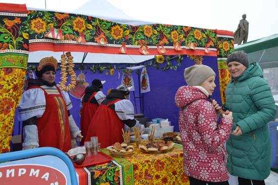 Пока на сцене шла «борьба за власть над природой», зрители могли насладиться не только веселым представлением, но и ароматными блинами с горячим чаем, которыми россошанцев щедро потчевали сотрудники молочного комбината. Художественный руководитель Дома культуры имени Милованова Юлия Стокозова, облачившись в костюм старорусского коробейника, щедро угощала празднующих красиво упакованными пряничками.