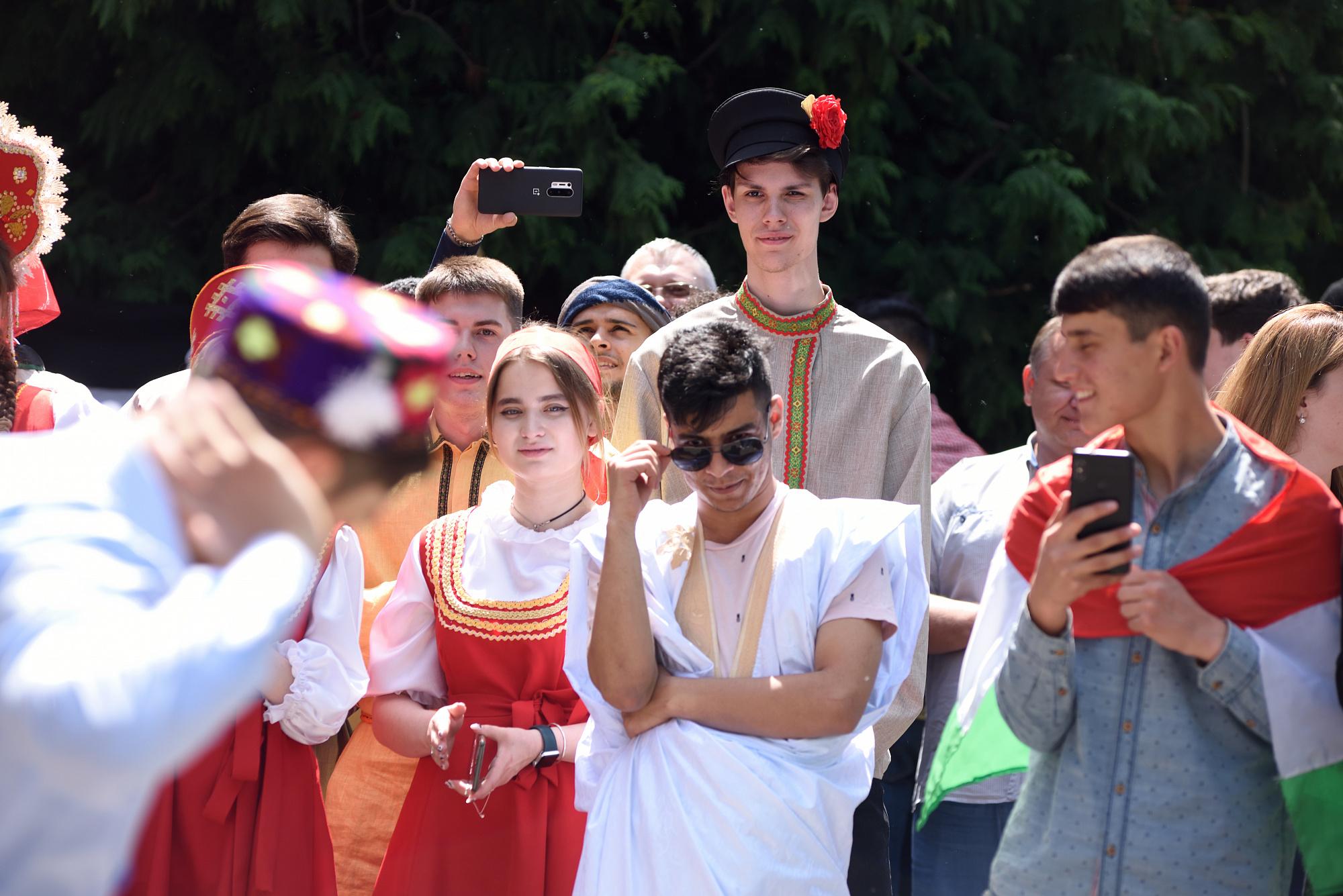 У площади Победы выступали артисты кукольного театра и цирковые коллективы. У памятника Биму развернули научную интерактивную площадку, где мальчишки и девчонки под присмотром взрослых проводили химические эксперименты, участвовали в квизах и викторинах.