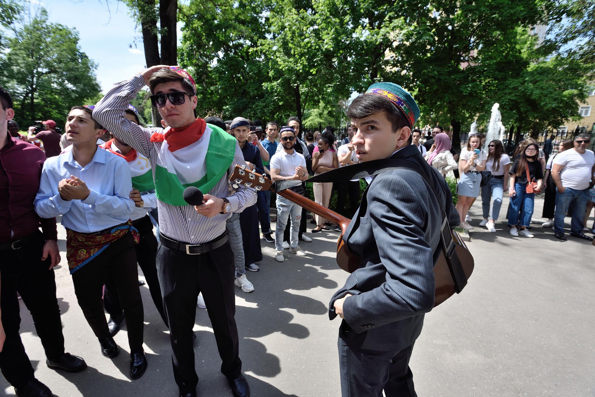 На музыкальных площадках проспекта исполняли композиции самых разных жанров: от рока до частушек. В полдень, когда начался марш-парад духовых оркестров, пошёл дождь. Однако горожан это не испугало - многие принесли с собой зонты или дождевики.