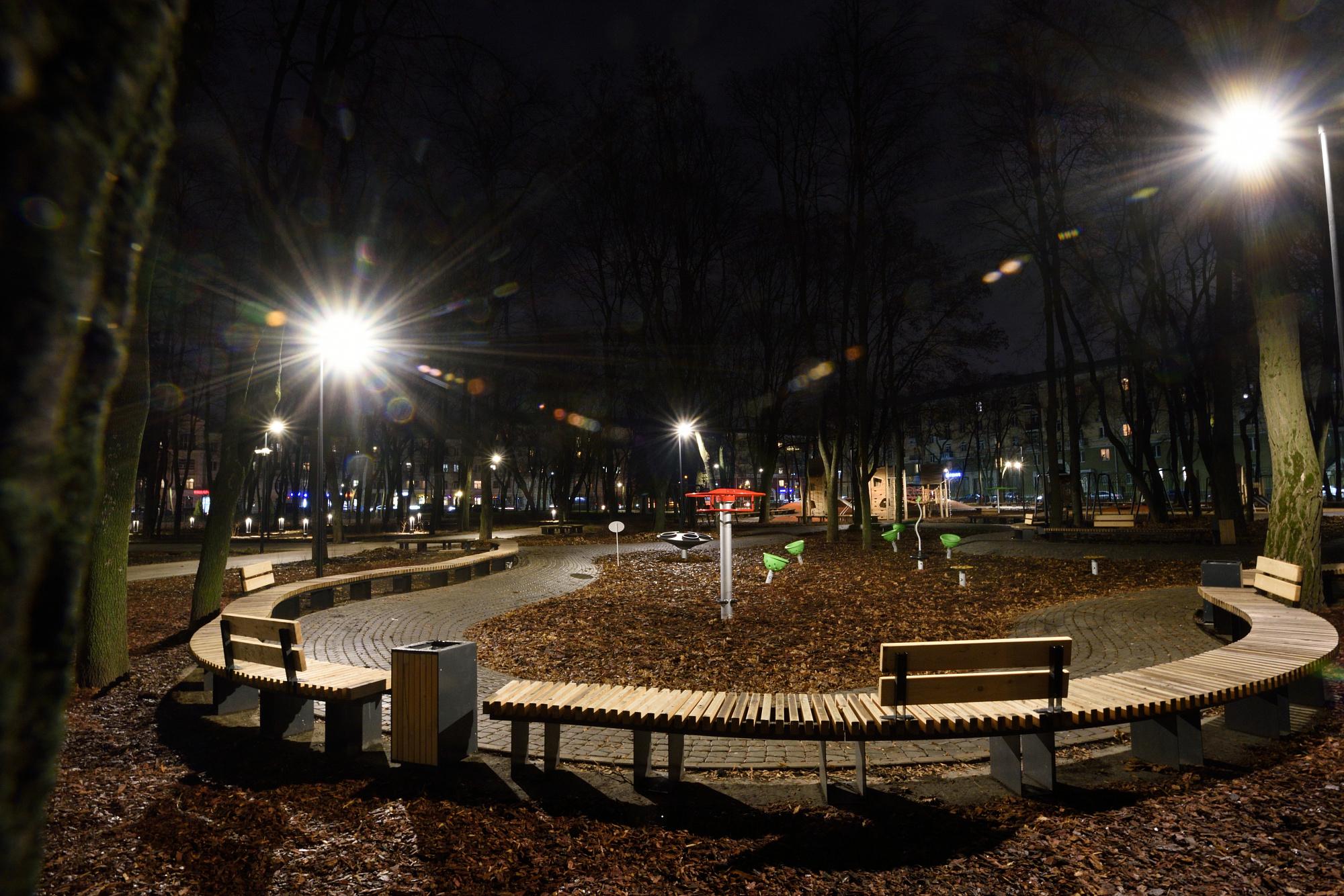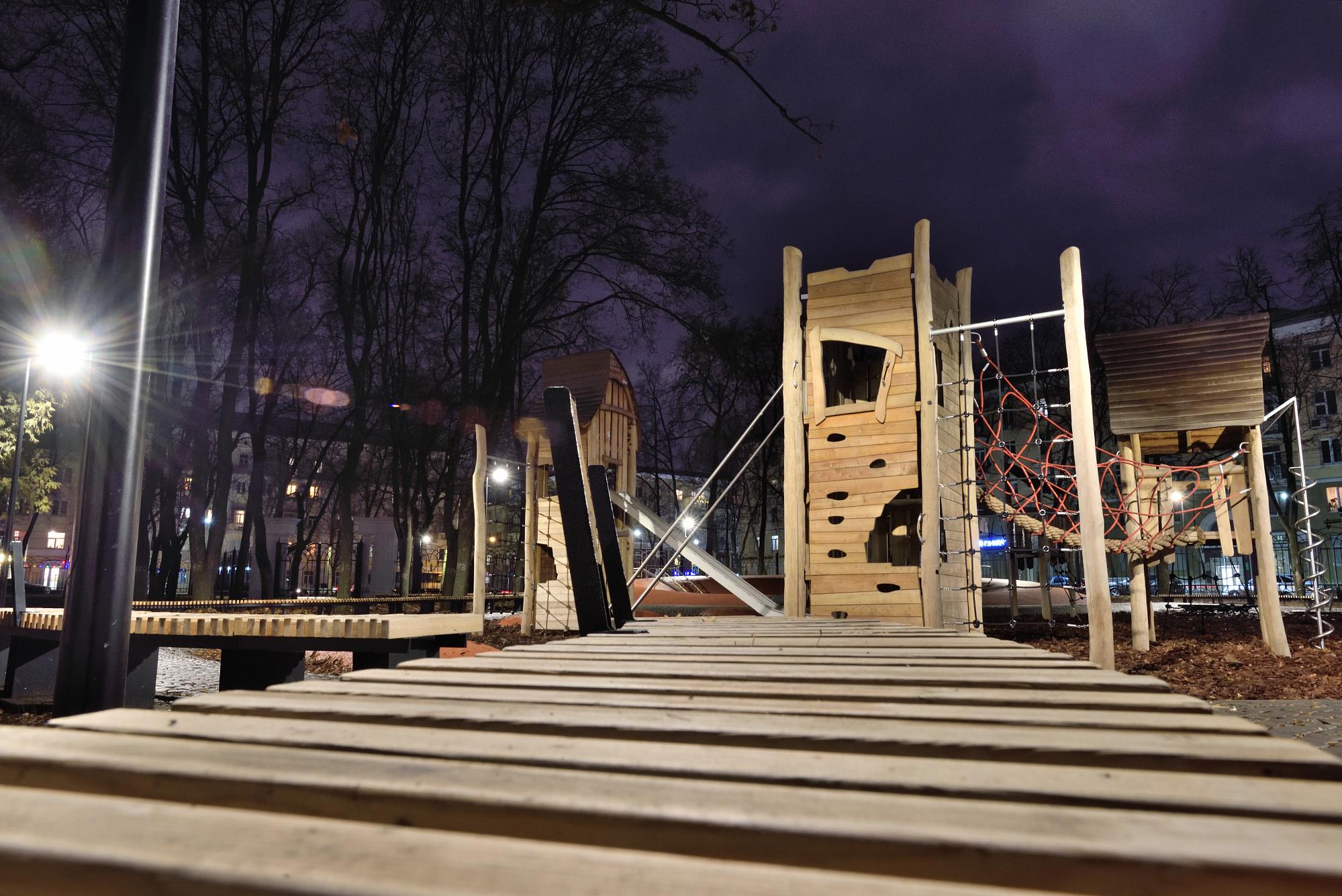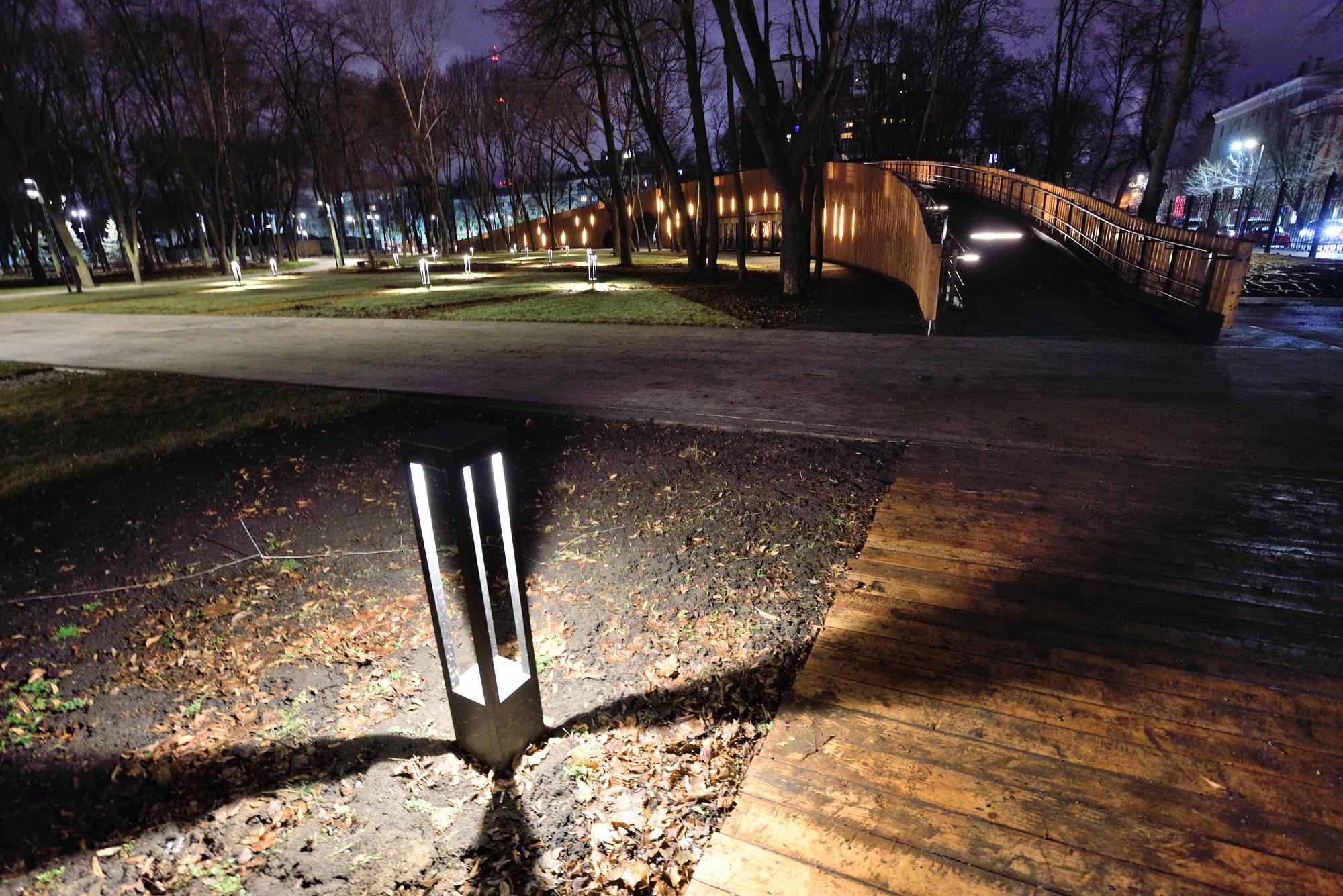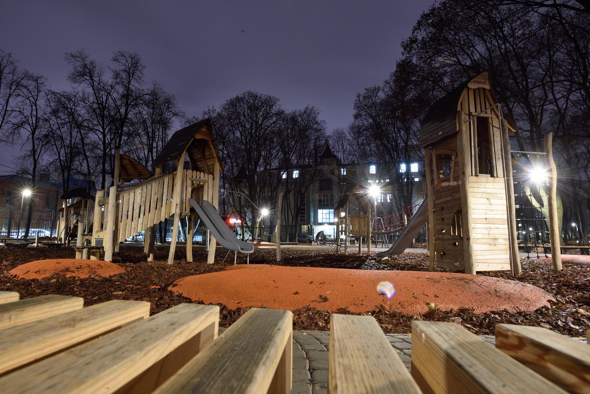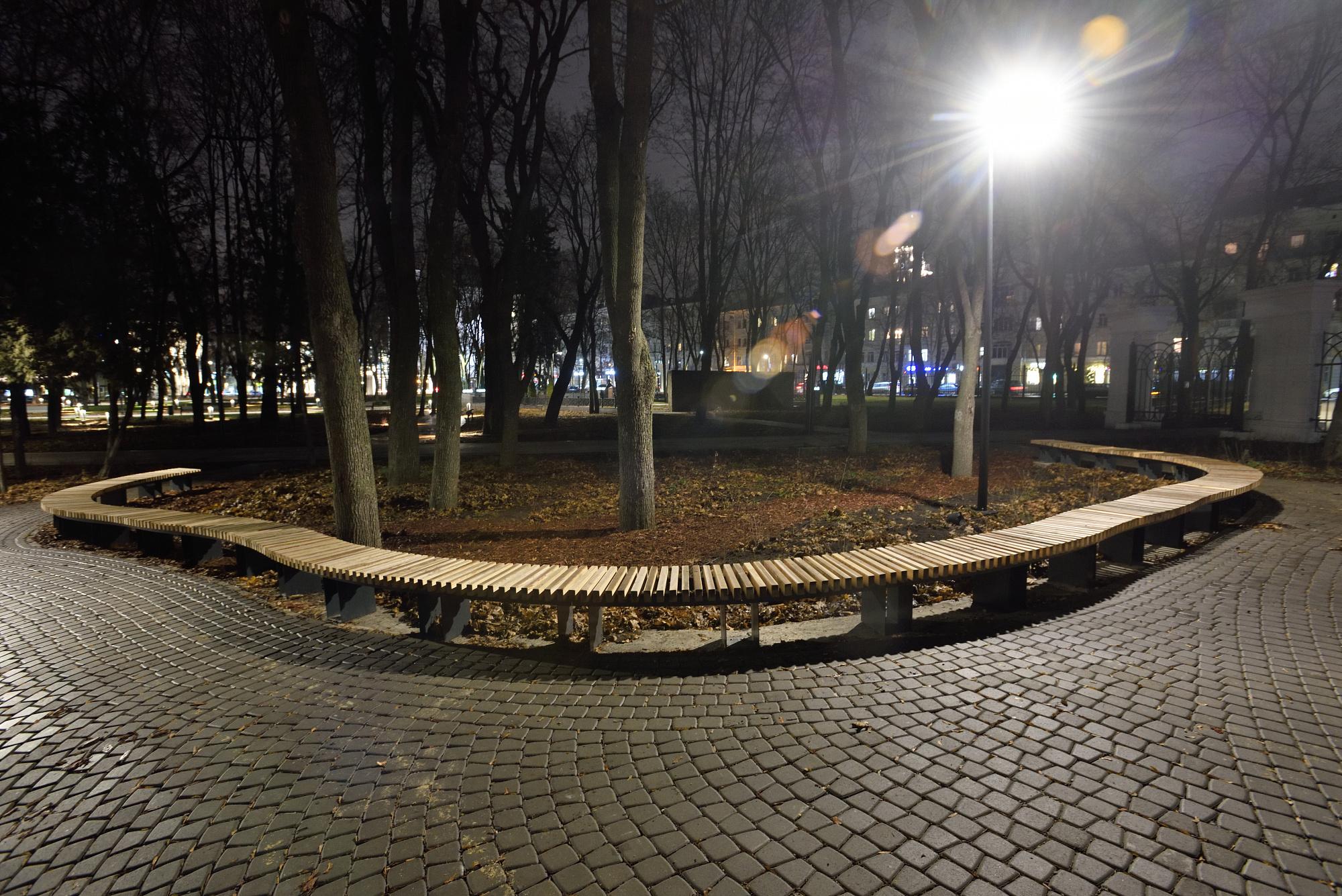 Новый «Орлёнок» прекрасно подходит для вечерних прогулок: там стало больше света. Классические фонари оставили на прежних местах. К ним добавили небольшие ландшафтные светильники, вмонтированные вдоль тропинок. А на некоторых деревьях развесили гирлянды со светодиодами тёплого жёлтого света.