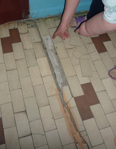 – С каждым годом трещины становятся все заметнее! Как-то ночью я услышала подозрительный звук, а наутро увидела порванные обои на стенах в коридоре и треснувшую плитку на кухне. А вторая входная дверь уже вообще не закрывается, – показывает женщина разрушающуюся стену возле дверного косяка, а также – вспученную кафельную плитку на полу в подъезде.