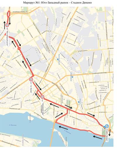 – № 1кс – с площади Ленина по улицам Плехановской, Фридриха Энгельса, Кольцовской, проспекту Революции, далее по маршруту;