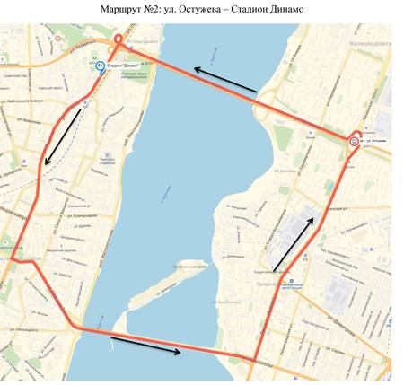 – №№ 20, 52, 104 – с площади Ленина по улицам Плехановской, Фридриха Энгельса, Феоктистова, Степана Разина, далее по маршрутам; в обратном направлении – с улицы Степана Разина по улицам Феоктистова, Фридриха Энгельса, Комиссаржевской, Никитинской, Средне-Московской, Пушкинской, Плехановской, площади Ленина, далее по маршрутам;