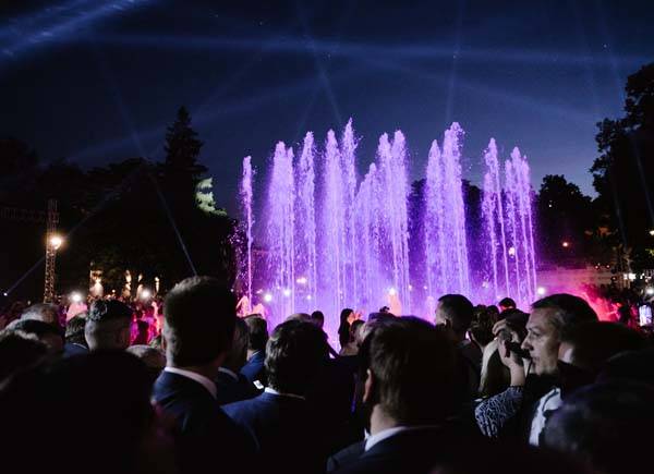 Герман Греф тоже искренне поздравил воронежцев с открытием Советской площади и инновационного фонтанного комплекса.