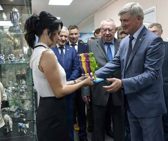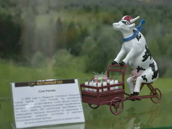 В выставочном зале можно не только рассмотреть «поголовье», но и самостоятельно подоить корову и продегустировать натуральное молоко. В день посещения музея бывший и нынешний главы области пополнили его коллекцию. Так, Алексей Гордеев подарил музею раритетную статуэтку коровы голштино-фризской породы, которая стояла в Минсельхозе ещё со времен Великой Отечественной войны. А подарком Александра Гусева музею стала оригинальная статуэтка «Танцующие коровы».